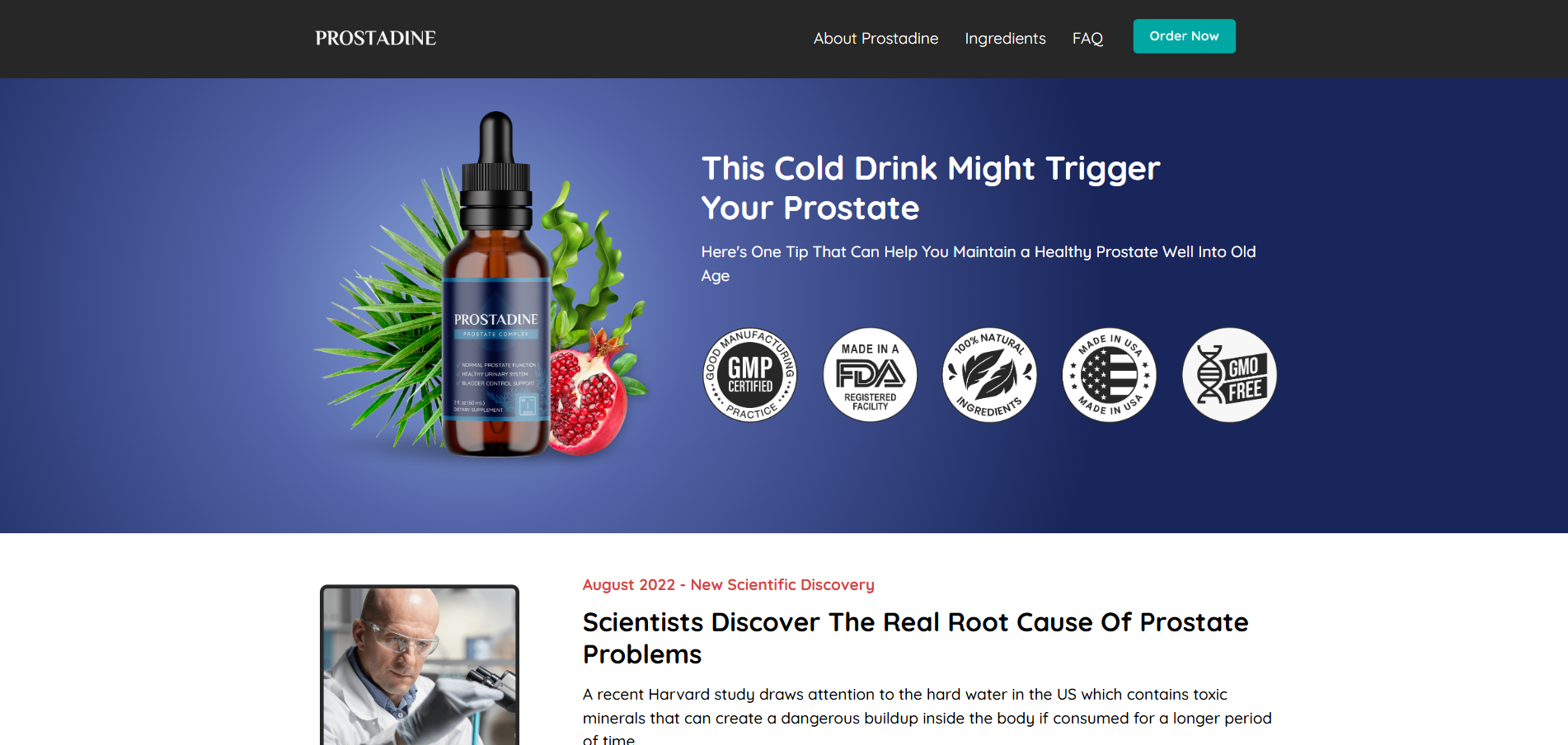 The Prostadine sales page markets the formula around prostate support, urinary balance, and convenience of use. This review page helps users inspect that presentation before continuing to the merchant website.